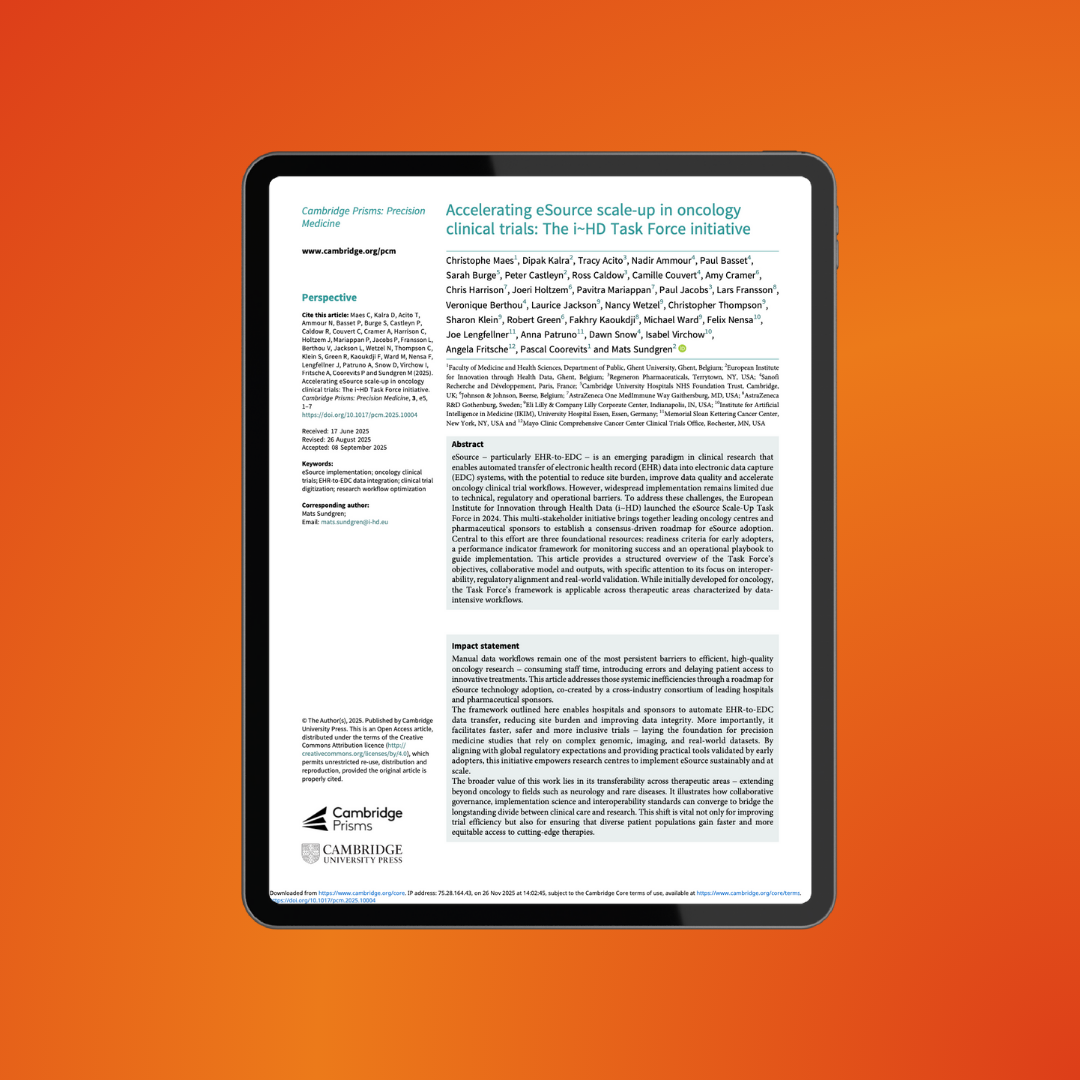 Oncology research is evolving fast, and traditional manual workflows can’t keep up with the volume and complexity of modern data. eSource-enabled EHR-to-EDC integration offers a scalable, automated path to improve accuracy, reduce site burden, and accelerate timelines. This shift requires more than technology alone—it demands a clear framework for governance, readiness, and phased implementation to support the future of oncology trials.
